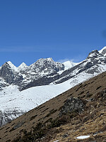 Transportetappe fra Dingboche til Loboche. Ei lita kneik før vi gikk over ei lang slette. Møtte snøen etter hvert. Runda inn mot Khumbubreen. Lunsj i Thukla etter at vi kryssa elva. Lang bakke opp mot Sherpaenes minnesmerker. Tid for ettertanke. Videre innover i skyggen av Loboche til Loboche. Kaldt, men vakkert. Loboche var dekket av snø, og pisskaldt. Fine rom på 4.925.
