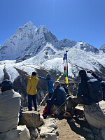 En lang og tung dag. Avmarsj fra Loboche tidlig på morgenen. Ca 5 km i kupert terreng til Gorak Shep - hvor vi hadde en lengre pause. Vi hadde tatt på storskoene, noe som ble i overkant. Godt å få bytta før vi satte kursen inn mot sjølveste Everest Basecamp. Kupert hele vegen, og ymse underlag - fra tørr sti til gjørme, snø og is. Sekretæren ble anbefalt å kutte turen, siden formen er forholdsvis laber. Det var ikke tema. Stort å komme dit, men det var jo bare en grushaug nå utenfor klatresesong, så ble en liten skuffelse. Skremmende å se hvor liten Khumbubreen har blitt, den har minket mye i tykkelse. En tung tur tilbake. Sekretæren var langt ned i reservetanken. Godt å komme inn etter mange timer i sterk sol. Flere i gruppa som var langt ned i kjelleren denne dagen. Det var >>>