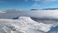 Fantastiske forhold for årstiden ned fremsiden. Måtte ta 2 turer. Med Harald. Men pass på, er noen svake lag i bratta der vinden har herjet.