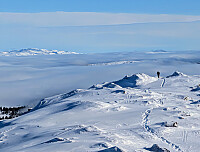 Rando med Harald. Stor forskjell på snøen, fra bunnløs nederst, lagdelt over skoggrensa og avblåst på nabbene. Fikk noen fete svinger i løssnø hengene, men hadde flaks ned siste bakken til veien. Var på vei ned i fantastisk pudder, ned i en liten renneformasjon, men plutselig kom det et godt puff og skytende sprekker rundt føttene. Heldigvis løsnet dette ikke! Harald kom etter meg og fikk gitt beskjed før jeg traverserte til trygg grunn igjen. Lærepenge! Neste gang må den trygge tanken trumfe endorfinene.