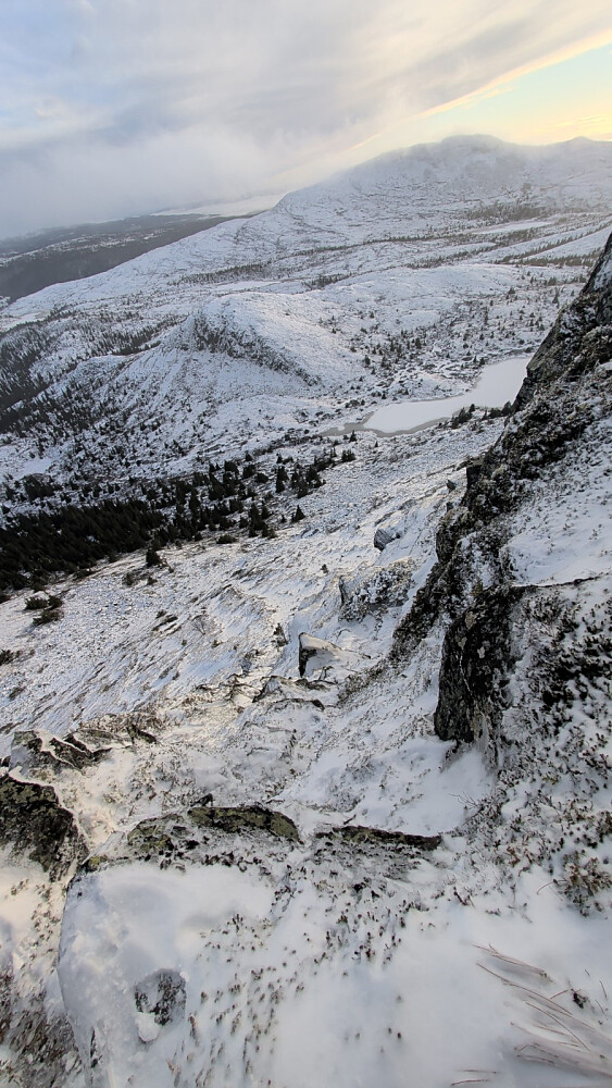Is og et tynt lag med snø opp østeggen, var ikke lurt å gå opp her i dag, men opp kom jeg :) Fantastisk lys på toppen!