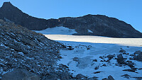 Måtte bare da yr meldte skyfritt. Kasta en madrass i varebilen og la i vei nord vestover lørdag ettermiddag. Fantastisk dag over traversen. Uheldig på flatmark før ryggen, smalt en stein inn i akilles og ankel. Vondt resten av turen. Gikk forbi et par taulag først på ryggen, ellers alene til nedstigning fra Store. Klatra opp "skorsteinen" som kommer ganske tidlig på ryggen og kjente at foten kunne bli et problem. Rolig og jevnt over ryggen ellers, fant riktig vei ved Søre idag. Prøvde meg opp direkteruta opp til Lille V, men snudde pga foten. ( Prøver å skylde på den :) )Utsatt klyving her, prøvde å traversere bort til renna, men rota meg bort i noen skumle bratte sva. Spennende nedklatring. Etter jeg kom til topps via renna klatra jeg litt ned fra toppen for å sjekke >>>
