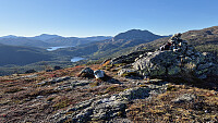 Etter en nydelig pause på toppen av Store Åråhovde (1001), ville jeg gå via Vesle Åråhovde (980) på returen. Da slapp jeg å gå samme sti på hele tilbaketuren, >>>