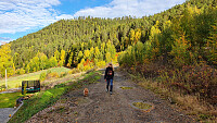 Den ene dagen jeg hadde tatt meg fri i høstferien ble det pent vær med mye sol og god temperatur. Julie hadde lyst på en skogstur uten altfor mye kjøring, så vi tok med oss Luna og kjørte til Hokksund. Der svingte vi av hovedveien og fortsatte opp til en parkeringsplass øverst i Lauvtjernveien.