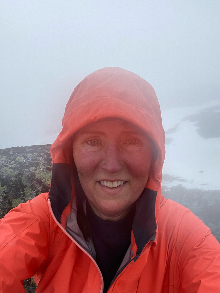 Fottur til Vestre Glidbjørgsnuten. Parkerte helt innerst ved gården på Glidbjørg og fant en sti som jeg fulgte et stykke. Etterhvert forsvant stien og det var bare å gå i retning mot toppen. Flott utsikt fra toppen når tåka letta! En del tåke og småregn underveis. Ned igjen fant jeg en fin sti som jeg fulgte et godt stykke. Etterhvert lå det for mye snø til at jeg klarte å skjønne hvor stien gikk videre. Det ble bushing nedover, nokså ulendt og tilgrodd.