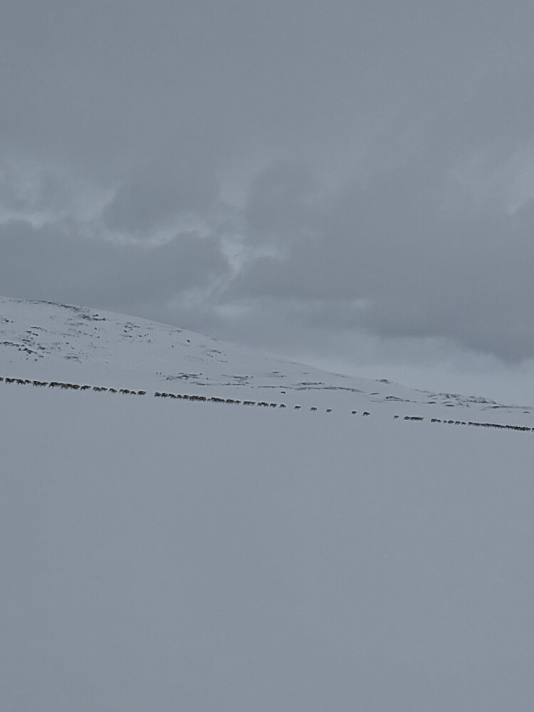 Målet var to av Brandsnutaene men turfølge ville ikke gå siste bit så det endte med at vi snudde. Bonusen var en stor reinflokk da vi hadde en liten rast på Jøssingbu på hjemturen.