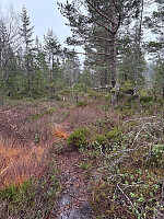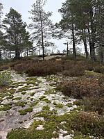 Fulgte først sti og merka løype til Liindalsknuten som er en av Birkenes kommunes toppturer. Fikk klippa av turen på toppturkortet og gikk i terrenget til Lillehei. Ca. 400 meter i terreng før jeg kom inn på noen svake spor av en gammel skogsvei, deretter til slutt i terrenget igjen. Ganske greit å gå her, selv om det ikke var noen sti. Så ut som det var en gammel bålplass på toppen, men må være flere år siden denne har vært i bruk. Litt utsikt fra toppen og slettes ikke så verst tur!
