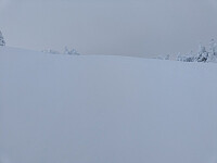 Over en uke tur-tørke! Dro derfor av sted uavhengig av værvarselet, og regna med lite sikt på åsen i dag. Men litt sikt var det! Mye pudder og flatt lys gjorde turen krevende. Ganske mildt i dag (-4) men omtrent ikke vind. Tett skydekke.
