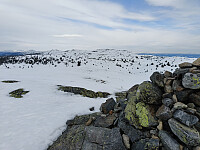 Gjorde feilen å kun se på symbolvarselet på yr.no i dag, og sjekket ikke tekstvarselet (som yr selv sier overstyrer symbolene lokalt). Var derfor i full tro på kjempevær etter kl 12 i dag. Handla i Fagernes først, mens tåka lå tungt, og kjørte så opp på Golsfjellet, mens tåka lå tungt. Stakk oppom Storefjell, for å drøye tiden, og kjørte så til parkeringa på Varhovd, mens tåka lå tungt. Tok meg god tid til lunsj i bilen, og ventet på tegn på opplett, og la så ut på tur med kortfeller i nypreppa spor kl 12.