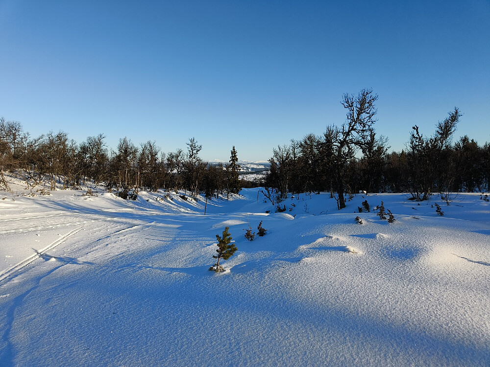 Ny skitur i enda bedre vær enn for noen dager siden. Møtte en del folk i dag, men så fort jeg forlot skisporet, ble det folketomt. Noen andre veivalg på ruta tilbake igjen, enn forrige gang. Gled litt bedre i dag på mohair-kortfellene mine.