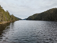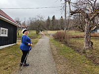 Sykla til bommen, men så det lå snø på traktorveien videre, så da satte jeg igjen doningen, og gikk på beina videre. Det var lettere å ta noen snarveier over hogstfelt i dag, enn å følge den snøfylte veien.