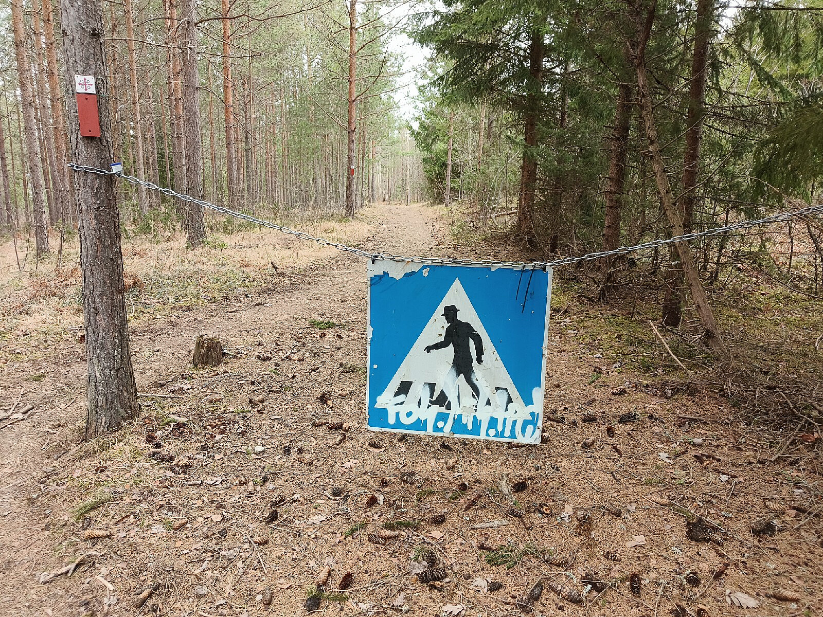 Sykla til bommen, men så det lå snø på traktorveien videre, så da satte jeg igjen doningen, og gikk på beina videre. Det var lettere å ta noen snarveier over hogstfelt i dag, enn å følge den snøfylte veien. Da jeg kom ned til bilen på p-plassen for Kristiansmokollen, brøt sola virkelig igjennom. Jeg bestemte meg for å grille pølser på gassbluss i sola, og tenke på hva jeg skulle gjøre videre. (Det ble ny tur til Puttekollen...)