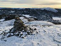 2 cm snø, lett å gå. Sola kom aldri skikkelig fram, men det så fantastisk ut innover mot Jotunheimen i dag.