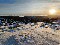 Da vi la turen innom varmestua etter toppen, var det nylig fyra der, så vi satt lunt og varmt og spiste nista vår. Så lite til sola i dag, og det var litt mer vind enn forventet.