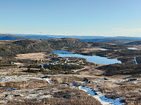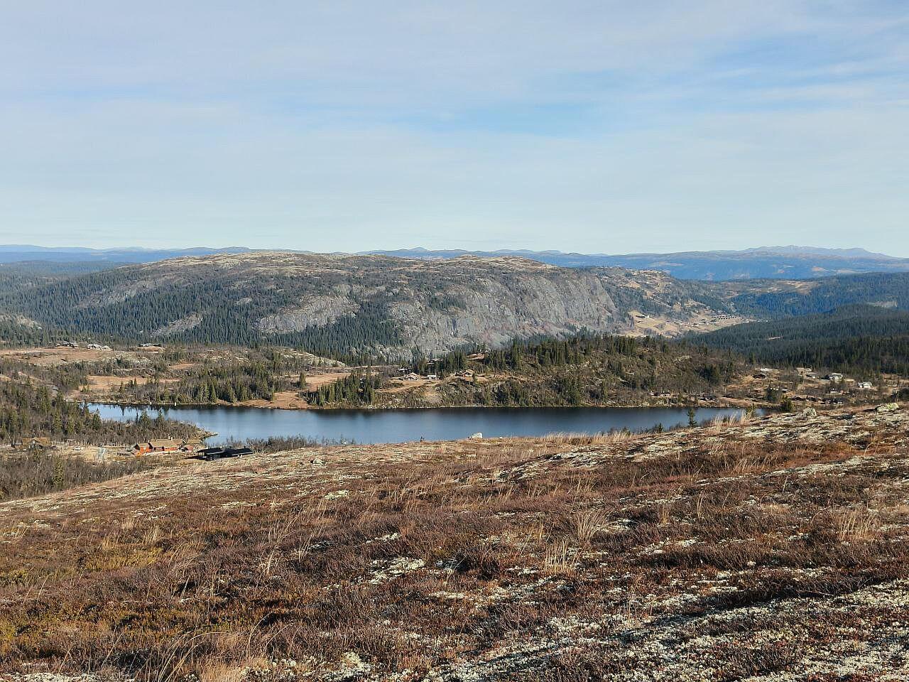 Stakk så oppom Hollastølsfjellet, der det sto en svart stolpe. Et fint tråkk leder opp dit fra hytta nord for Piltingsrud.