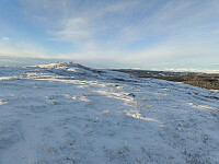 2 cm snø, lett å gå. Sola kom aldri skikkelig fram, men det så fantastisk ut innover mot Jotunheimen i dag.