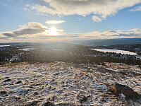 2 cm snø, lett å gå. Sola kom aldri skikkelig fram, men det så fantastisk ut innover mot Jotunheimen i dag.