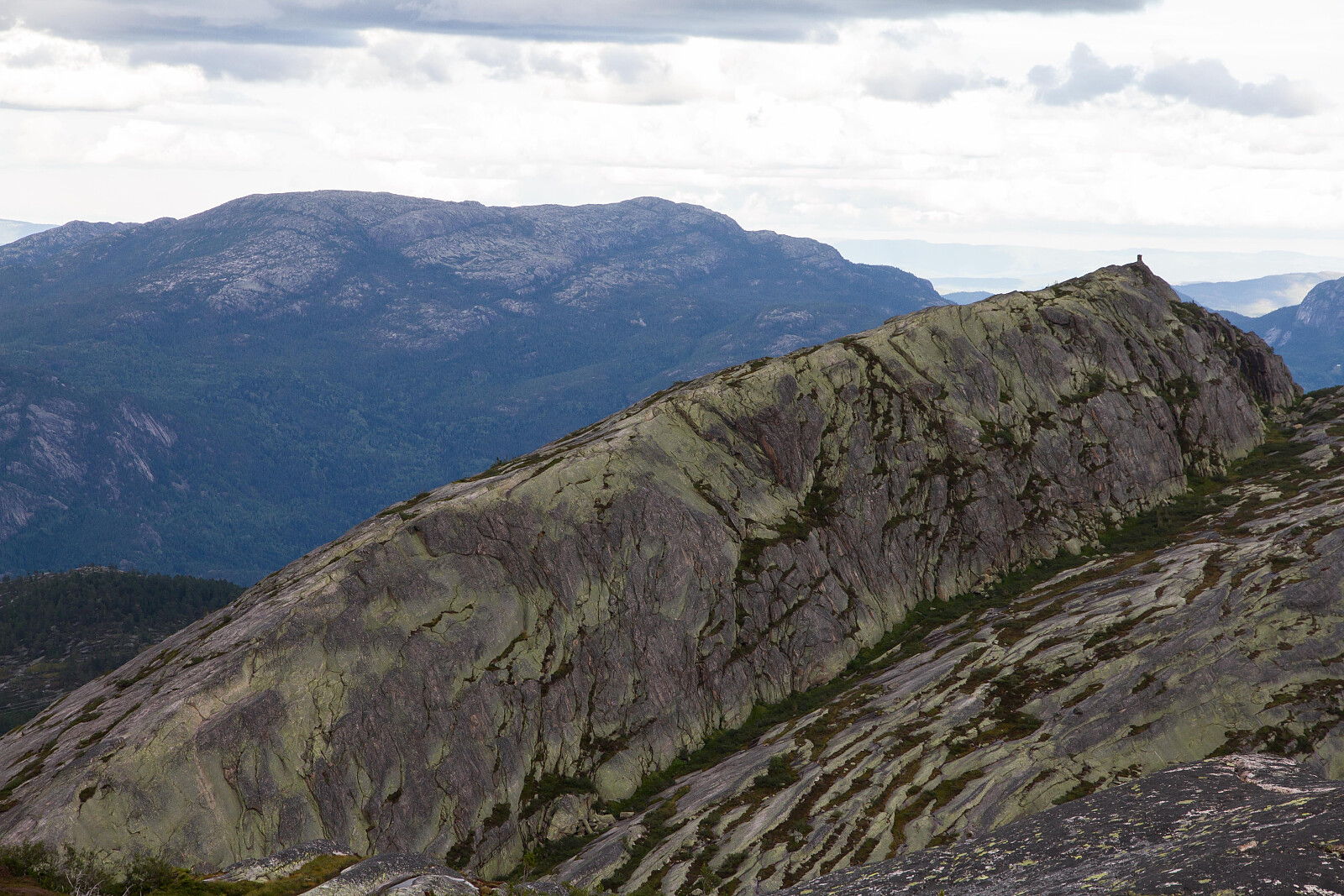 Var en tur på hytta denne helgen og tok meg fri fra slekta for en kveldstur til etterlengtede Roholtfjell vest. Har vært på Roholtjell øst noen ganger, men svingte allikevel oppom denne på vei til vest toppen. Tok sjansen på å gå videre rett vest fra varden på øst toppen, så ut til at det gikk en slags sti eller tråkk videre herfra. Det gikk fint og var en luftig tur langs kanten av stupet. Slapp dermed å gå ned samme vei for så videre til vest toppen. Tok en rast ved vannet mellom toppene og lurte litt på hvor jeg skulle gå opp. Bestemte meg for å prøve rett på og her gikk det jammen meg en sti. Denne er er dårlig merket, eller rettere sagt ikke merket i det hele tatt faktisk, så langt jeg kunne se. Men har man først funnet den så er den grei å følge. Returen gikk >>>