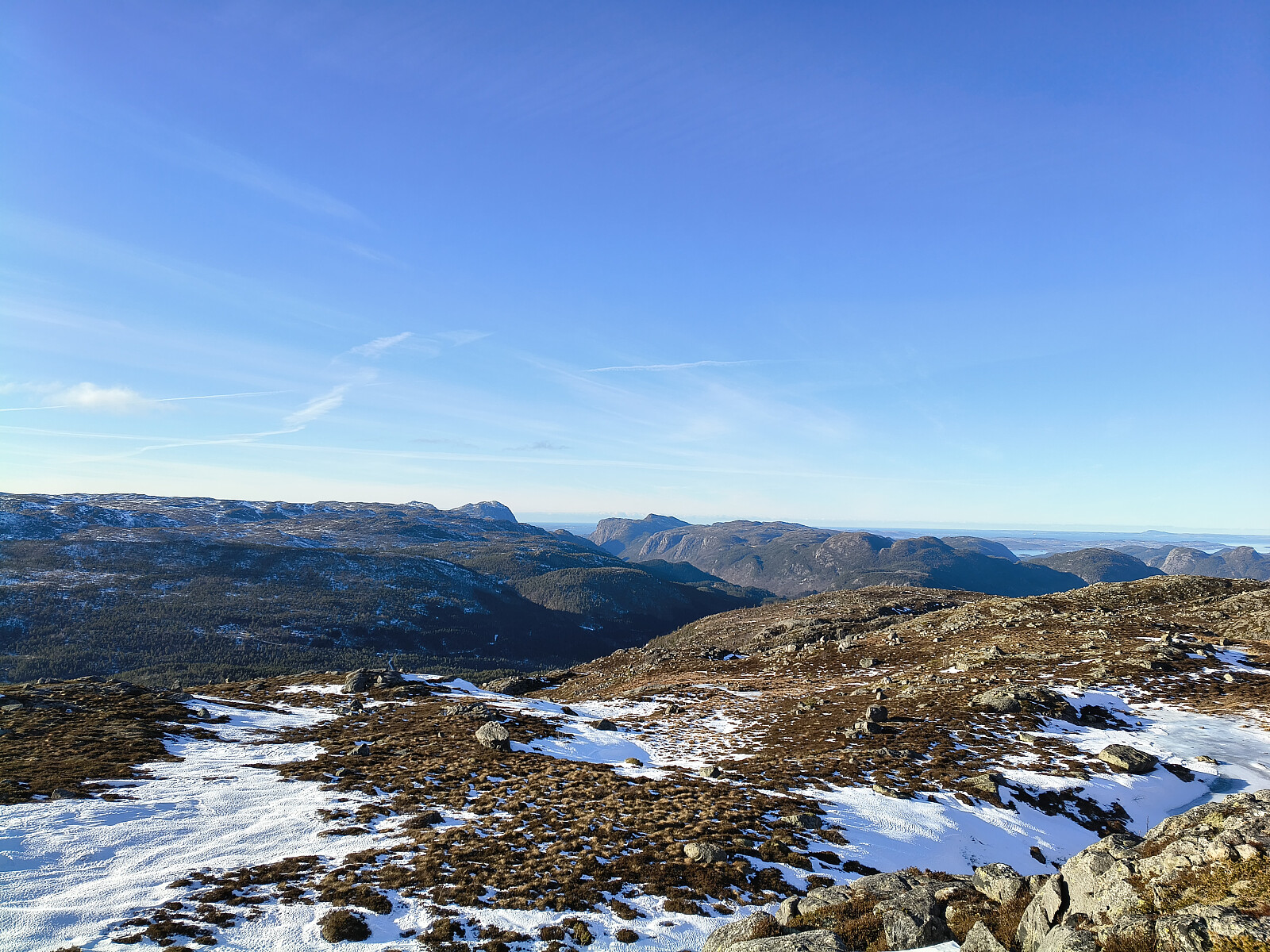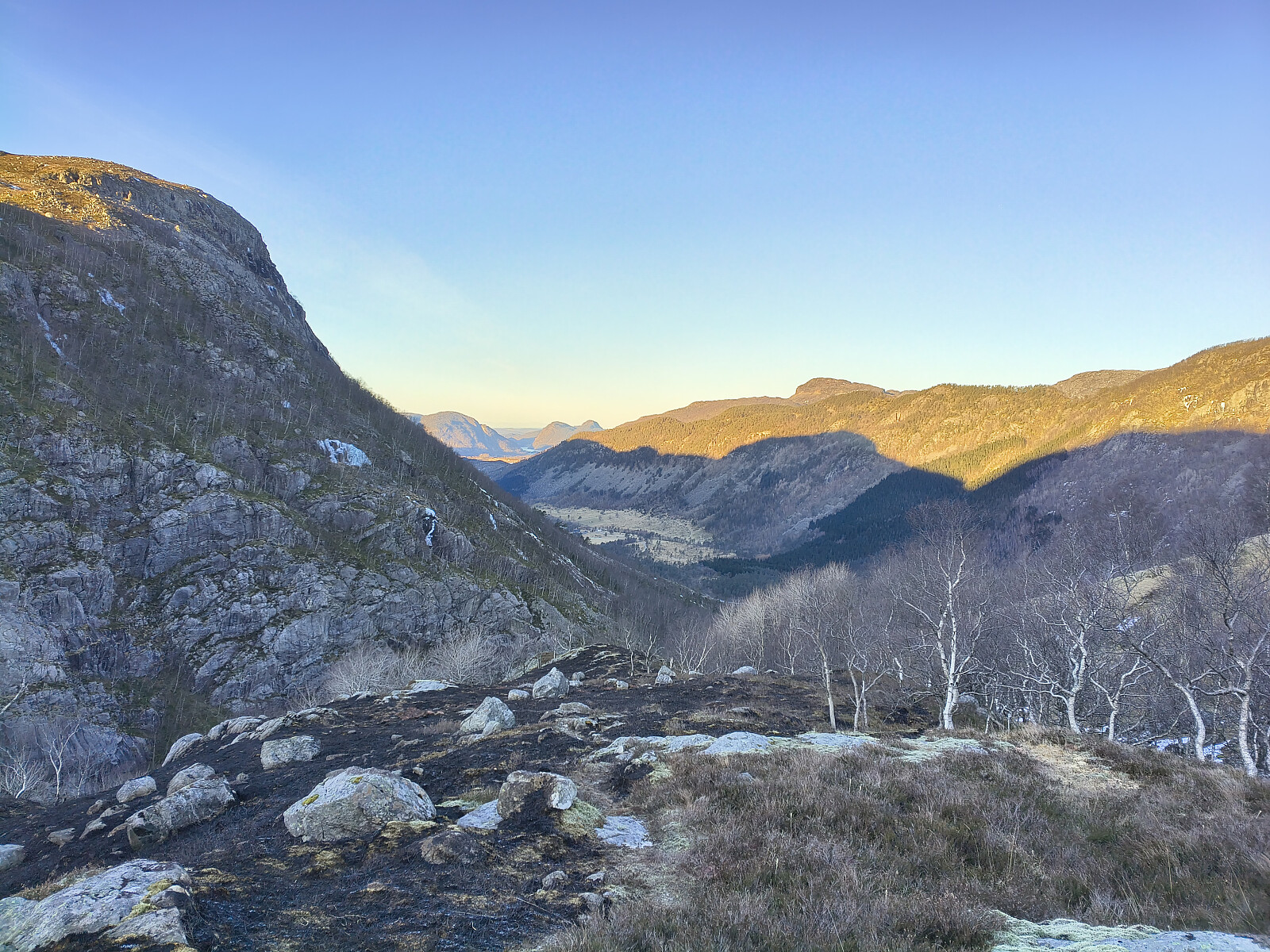 Utsikt innover mot Målandsdalen. Syneleg er og Reinaknuten og Bjørheimskjeften.