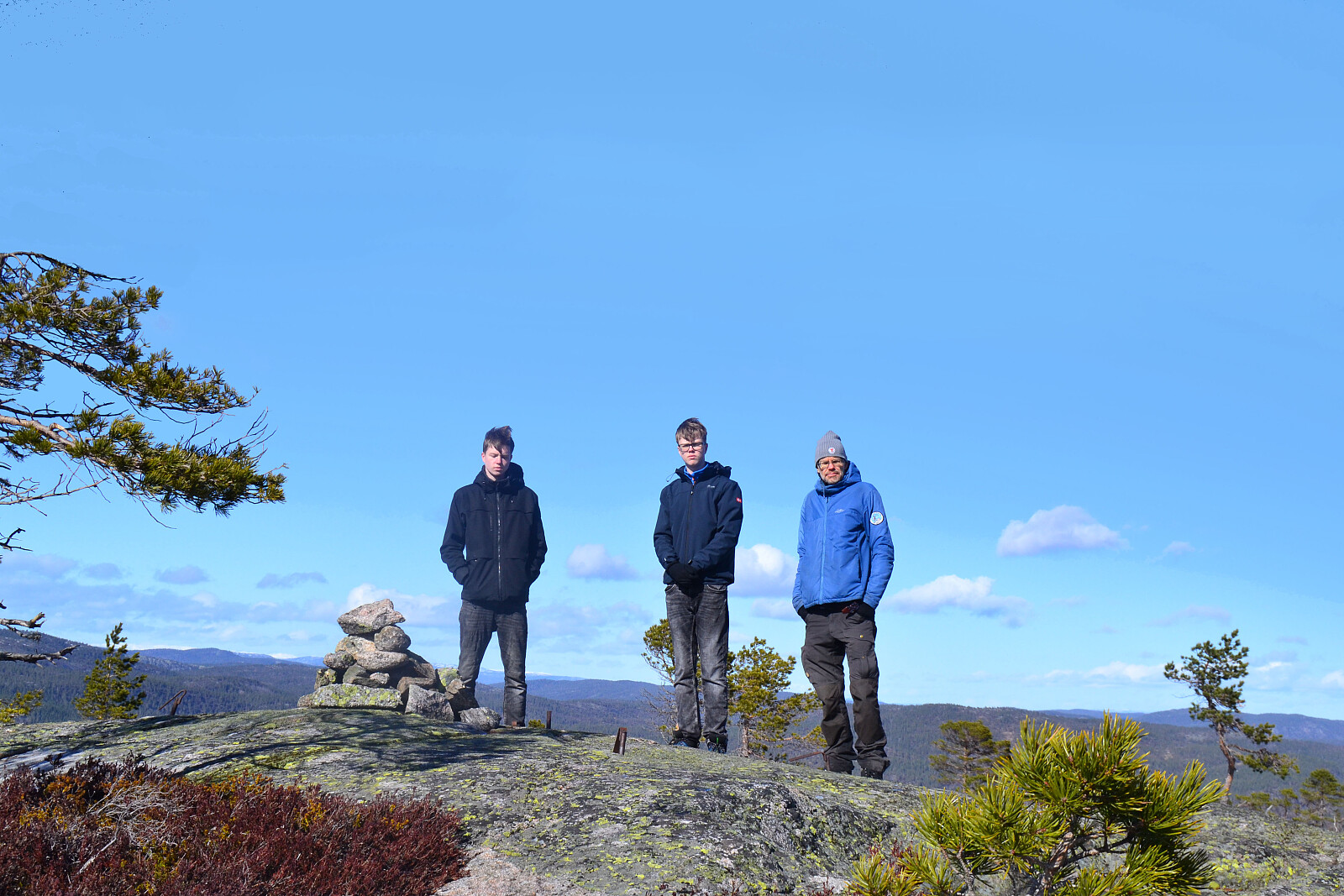 Tur til sydlige del av Telemark for å fylle litt nye «røde» topper på lista. David og Philip var med. Tok av mot Gjerstad fra E18 og videre mot Øy fram til Felle. Kjørte veien herfra inn til Skåli. Rett etter bebyggelsen ligger innkjøring til venstre inn til en slags parkering på noen svaberg. Det går en blåmerket, liten sti til toppen.