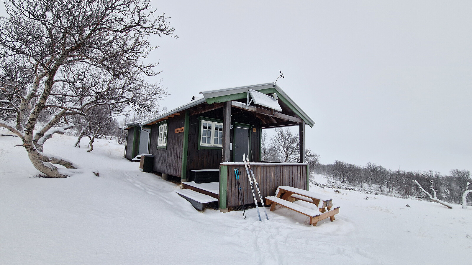Gårdagen gikk med andre ting enn tur så i dag ble det skitur. Erling ble med så vi parkerte 1 bil på parkering Beitrusten før vi kjørte opp på Verket. Løypene var kjørt for noen dager siden så regnet med litt varierende føre. Gikk opp bak Kamferhaugen før vi kom opppå Skrabban. Fra der vidre mot Appelsinhaugen. Hittil veldig greit føre. Litt avblåst og igjenblåst spor mellom Appelsinhaugen og Grønhøbua. Ble pause i bua før vi fortsatte mot Jensasetra. Fra her retning Utsikten. På vei dit traff på kjentfolk. Signering i boka på Utsikten før vi satte kursen mot Beitrusten. Knallfin tur og de nye skiene fungerer utmerket .