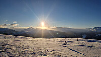 Enda en tur i det fine været så da passet det bra med test av nye fjellski. Nissen var så gavmild på julaften så jeg fikk jammen et par nye fjellski også. Hehehe. Synes det er veldig gøy med nytt utstyr. Fulgte skiløypa et stykke før det ble ut i terrenget og lage eget spor. Brøytet spor langs det gamle trugesporet mot toppen. Med det været og de omgivelsene så ble det helt knall. Aron var hjemme.