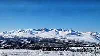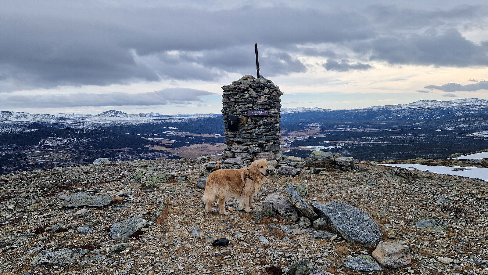 Det blir nesten så en gjentar seg selv.--> Sol ,blå himmel, vindstille og påske. Kan ikke ha det bedre på toppen i dag. Burde vært på ski men siden Erling skulle ut på første trugetur med egne nyinnkjøpte truger så kastet jeg med. 8 minus på mårran så det var hardt spor. På tur ned igjen møtte vi kjentfolk. Først en dame og litt lengere ned en dame med en hund. Veldig trivelig å treffe og slå av en prat med andre turgåere her for det er sjeldent.