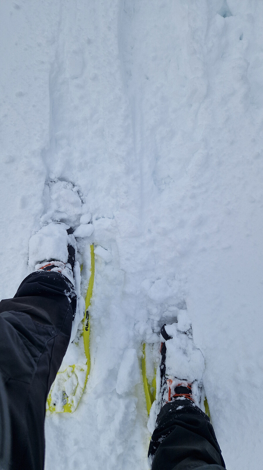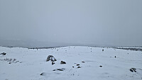 Skikkelig grå dag med snøvær hele dagen og en daff person inne. Det måtte det gjøres noe med så jeg tok meg sjøl i øran og dro meg ut i snøværet. Så ikke ut som det hadde kommet så mye snø hjemme men det hadde det virkelig. Har slitt med klabbing under trungene så nå måtte jeg teste litt"trugesmøring". Dro på litt før jeg dro fra hjemme og var virkelig spent på om det funket. Masse snø og nullføre oppover mot toppen så det ble ei relativt tung og herlig økt. Og ingen klabbing under trugene. Det må testes flere ganger før jeg tror helt på det. Store kontraster på kort tid med skikkelig vår på toppen og nå var det full vinter igjen. Men slikt må man regne med på våren..