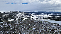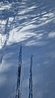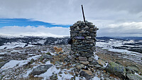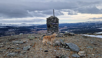 Så ble det trugetur i dag også. Var usikker på snømengde oppi lia så vi tok truger. Start fra den gamle revefarmen og gikk opp til skiløypa. Her var det skare og delvis lite snø. Vidre opp til setrene var det stedvis enda mindre snø. Tok opp snarveien ved ene setra og opp på selve merket sti opp til pynten først. Signering i trimboka før vi fortsatte oppover mot toppen. Tok av fra stien og gikk bratt oppover på skaren. Veldig herlig å gå her. Litt vind og noe overskyet på toppen så ble rask pause. Signerte i trimboka og retunerte samme vei. Tur med Erling i dag.