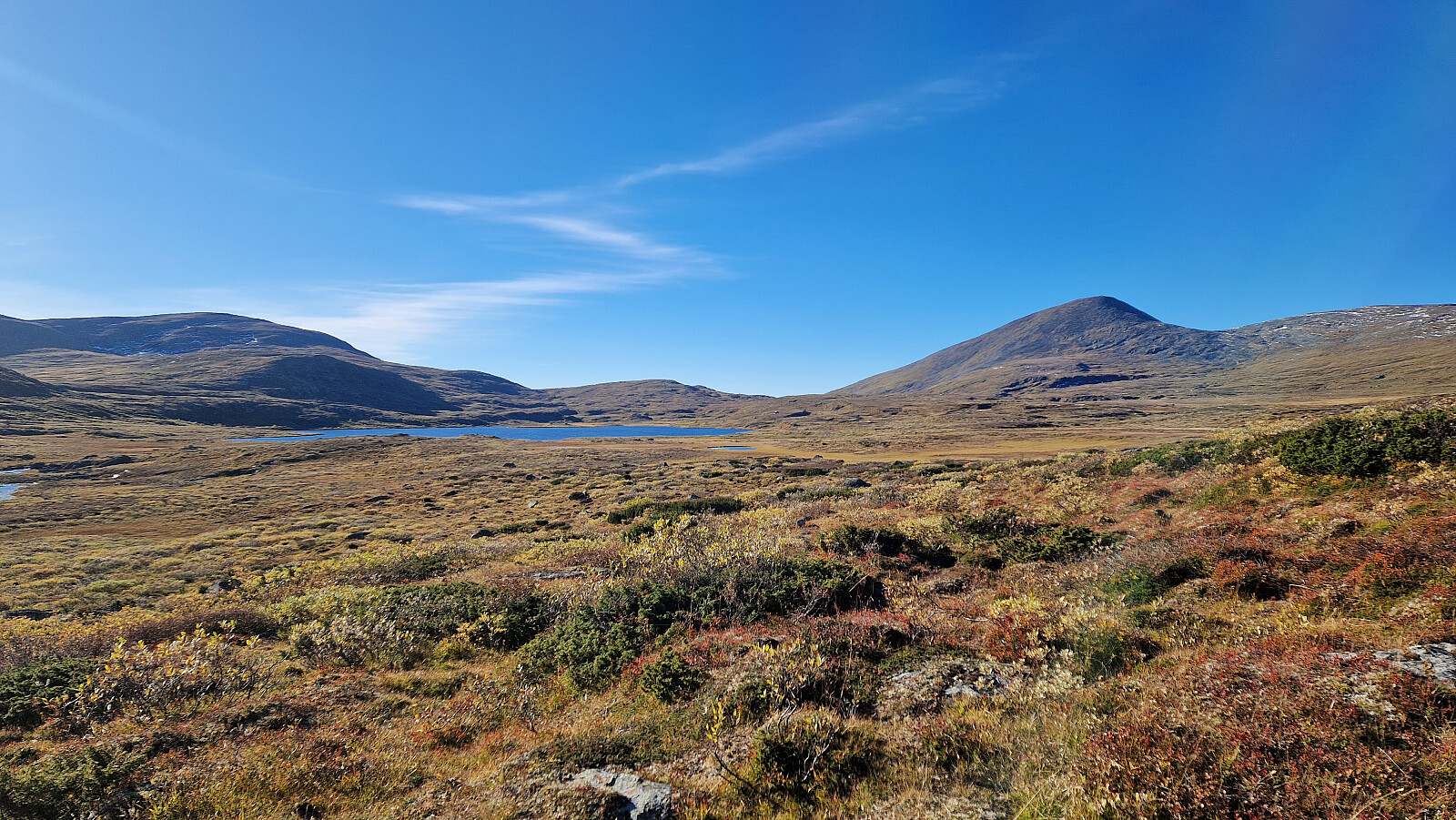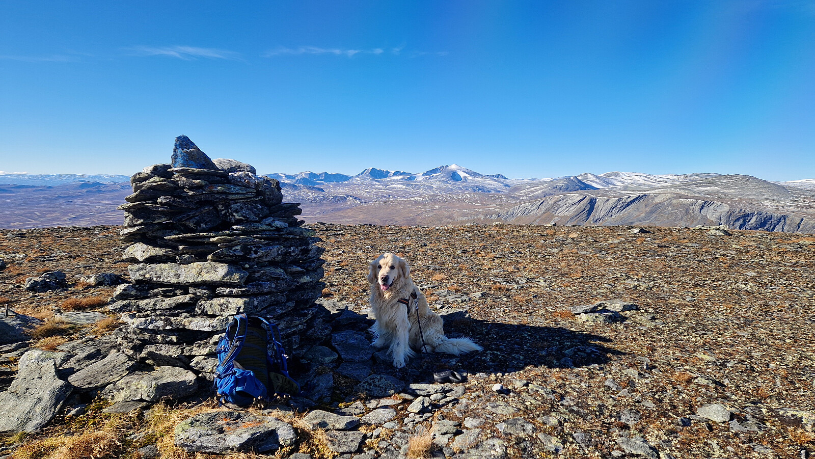Sånne dager i fjellet er bare helt magisk. Tidlig start fra hjemme. Kjørte inn Einunndalen og vidre innover til Bekkelegret . Start fra parkeringen her. Mulig litt tidlig på mårran så jeg gikk litt for langt opp før jeg tok av på stien så det ble en liten æresrunde før jeg kom meg inn på stien. Super sti innover forbi Veslkolla og vidre innover. Tok av fra denne stien på naturlig plass og gikk over på dyretråkk. Veldig lettgått terreng oppover. Passerte noen flekker med sesongens snø som Aron fikk kose seg på. Litt steinur siste bratta før toppen. Knallfin utsikt fra toppunktet og alle de fine fjellene på alle kanter i det supre høstværet så kan det ikke bli stort bedre. Gikk stort sett samme rute tilbake. Det var kommet flere biler på parkeringen og noen som sanket sauer.