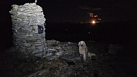 Ettermiddagen gikk fort med bla vasking og transport av campingvogn til vinterlagring. Etterpå ble det tur med Aron og sesongens første tur med hodelykt. Grei temp men litt vind på toppen. Fikk også med oss en liten måne i horisonten . Start fra Sveen.
