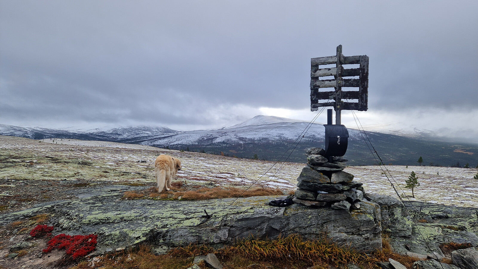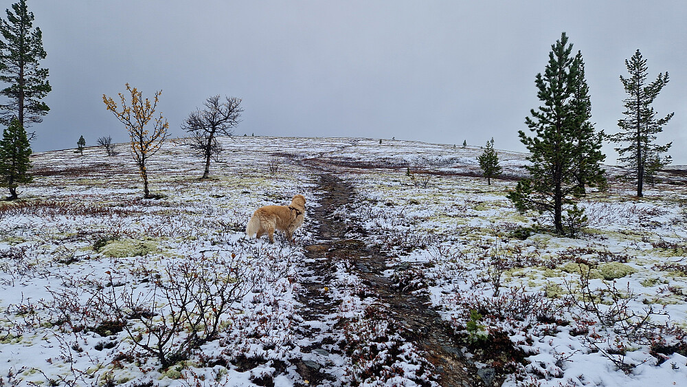 Denne helga var det Amy som satte dagsorden Lørdagen kom med både vind, mye nedbør, strømløst og uten mobildekning. Dagen i dag ble mye bedre så det ble tidlig start. Bløtt I terrenget og da jeg kom opp mot bjørkeskogen så møtte jeg første snøen. Tynt lag med nysnø på toppen.