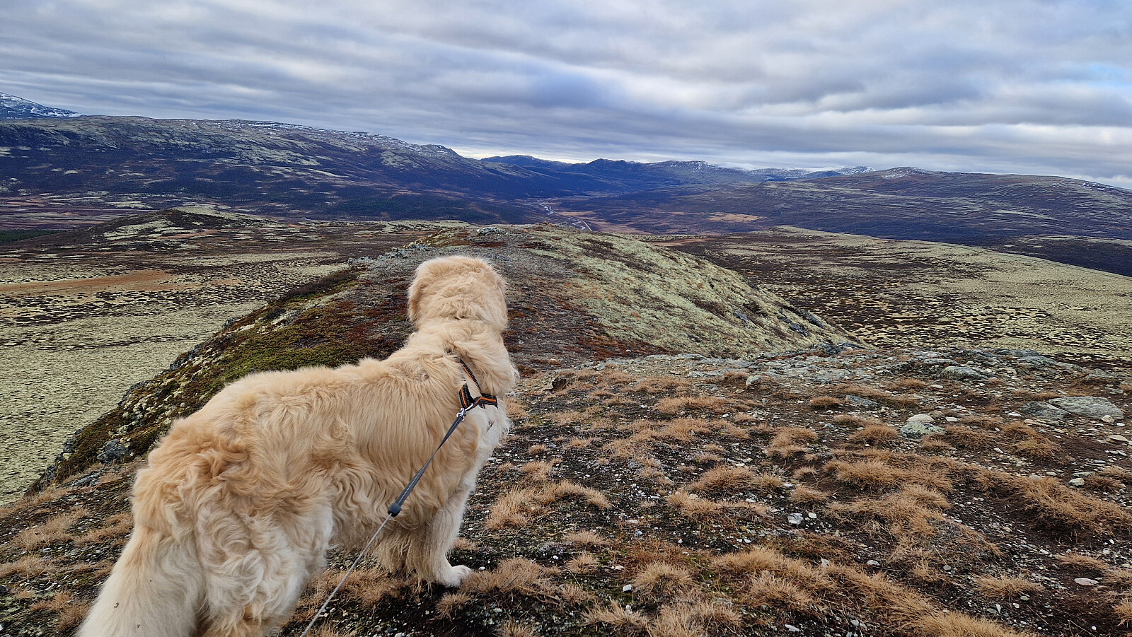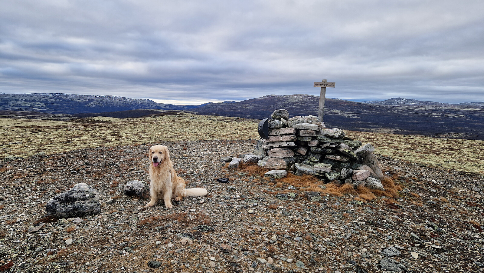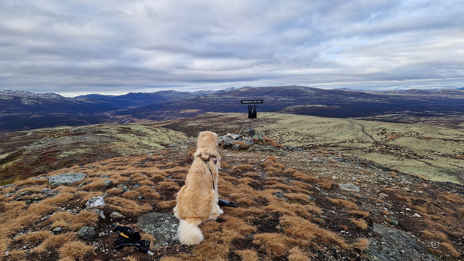 Kjørte opp til vinterparkering Nygruva. Gikk veien bort til Nygruvhytta vidre på stien via Nygruvhøgda. Bløtpartiene var ganske harde så fint å gå i dag. Liten pause på toppen og signering I boka..Fortsatte stien ned på motsatt side. Peilet inn Lurven og bushet ned og over myrene. Innom kassa på Lurven før det bar rett opp lia og over flatene mot Vardhøe. Liten stopp ved varden før vidre ned mot bilen. Fin dag og Aron sprang selvsagt løs.