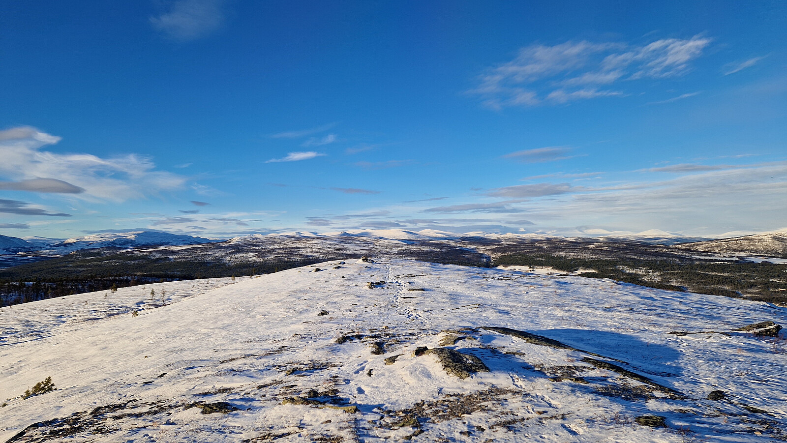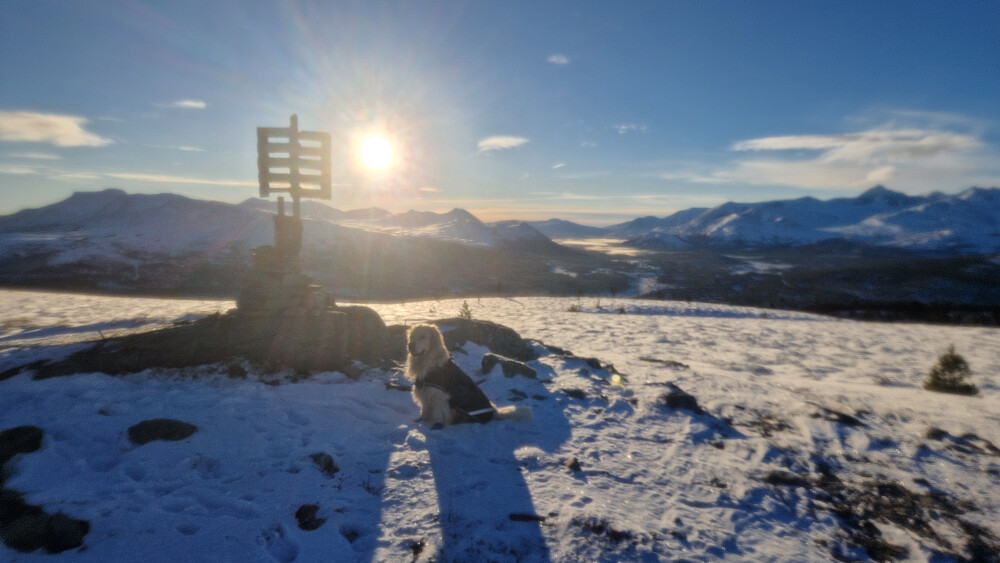 Knallvær idag og 10 minus ved start. Løp løs i dag også. Kun noen få cm med snø foreløpig så en må bare vente på mer. Var en person som hadde gått oppover mot toppen men sporene tok av fra stien og inn i skogen et godt stykke opp. Helt nydelig på toppunktet med sol og blå himmel.