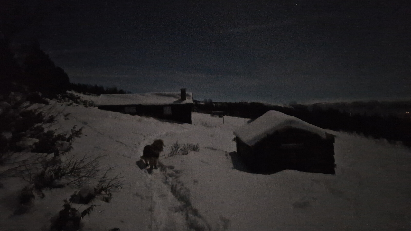 Kulden har blitt langvarig og dag etter dag så er Folldal kaldest i landet. I dag måtte jeg bare ut på tur for jeg er ikke bygd for å sitte inne kveld etter kveld. Ikke noe problem med tur i det fine månelyset og minus 31 grader da vi dro hjemmefra.. Minus 26 grader på gapahuken ved helsestien da vi passerte. Aron hadde over snittet med energi etter noenrolige dager.