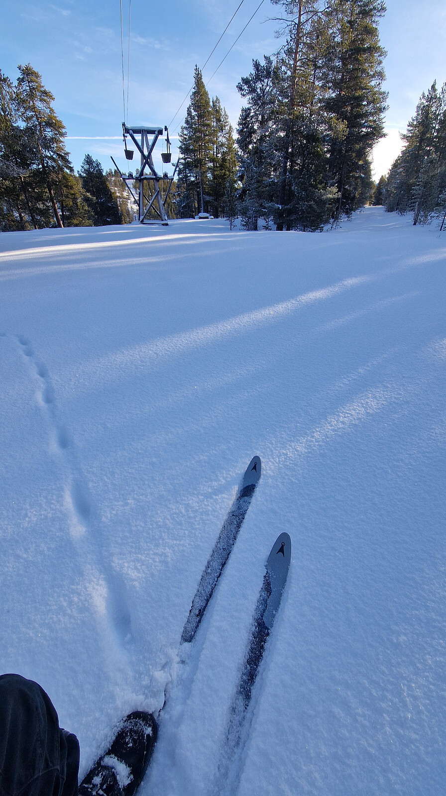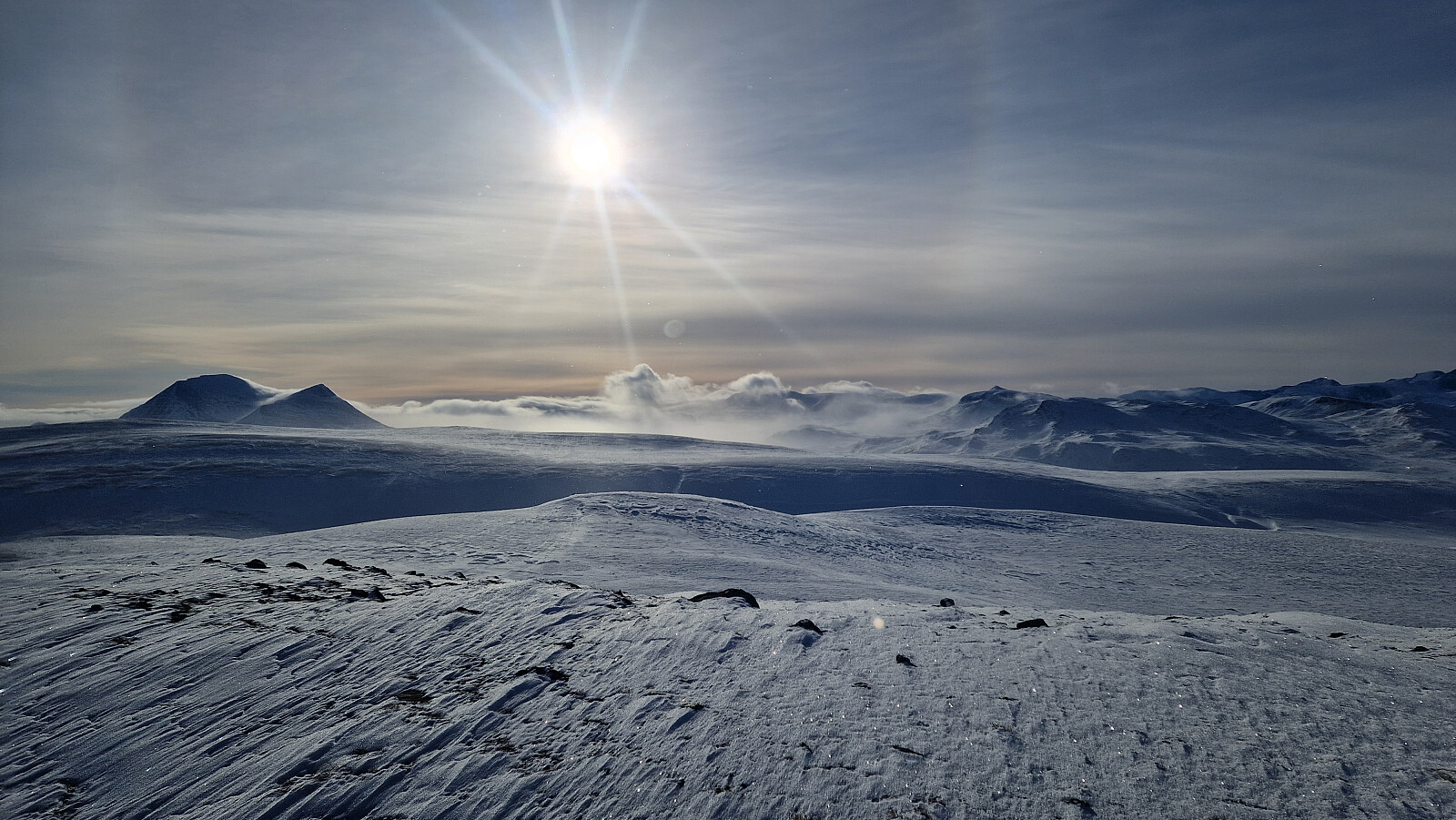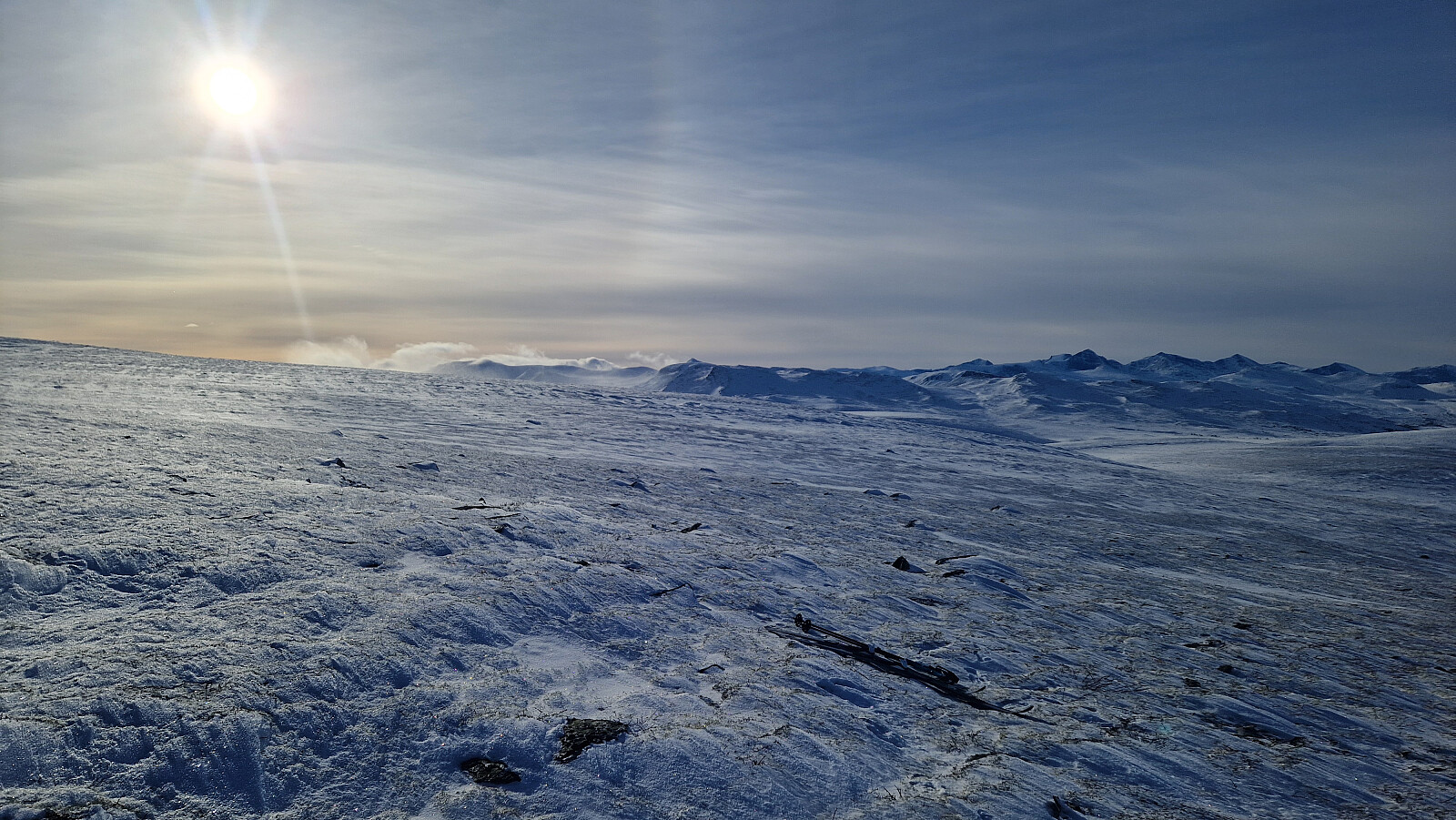 I dag fikk jeg lyst på ei real økt på fjellski.Kulden har bitt seg fast og jaggu var det 30 minus ved start i Stormoegga. Hadde på forhånd sjekket om det var kjørt opp scooterløype men det var det ikke. Så her ble det det brøyting av spor oppover og helt opp på snaufjellet. La opp til et rolig og jevnt tempo slik at jeg ikke skulle anstrenge lunger for mye i kulden. Ble fort mildere oppi skogen og det gikk veldig greit. Et stykke lenger fremme kom jeg til flere trefall over veien/traseen. Full sperring så fikk varslet de som skal stikke løype. Vel oppe på snaufjellet ble det hard skare og lite snø så her gjaldt det å finne partier med snø. Opp mot toppen ble det mer skavler og oppe på ryggen måtte skia av og bæres pga nesten ikke snø. Ganske kraftig vind så gode klær var godt å ha i dag. Ble et raskt besøk ved varden for her tok vinden godt og den var iskald. Men lite snø og harde skavler så ble det ingen god skikjøring ned igjen. Fulgte stort sett samme spor ned til skogen og vidre tilbake til bilen. Kun 16 minus ved bilen da jeg kom tilbake.