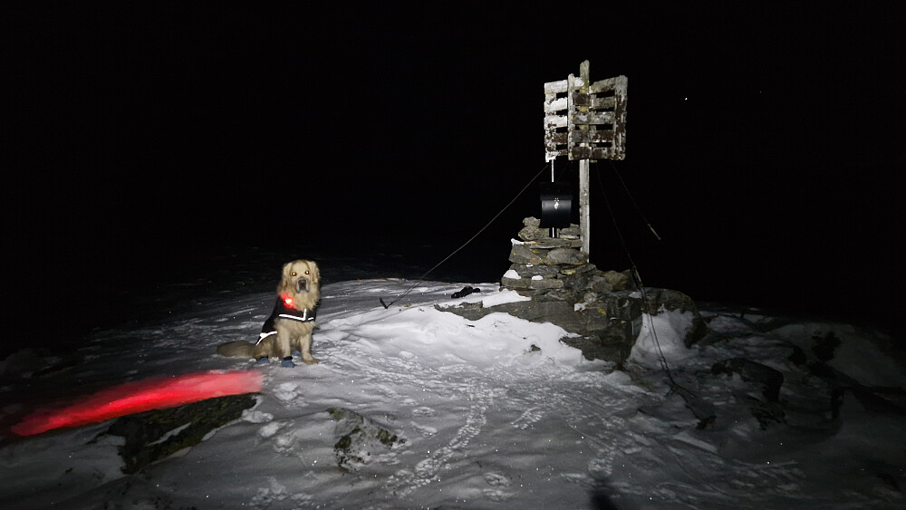 Kveldstur med Aron. Noen hadde gått en tur med truger i sporet siden sist jeg var her så det hjalp på. Rundt 20 minus at i kveld og Aron sprang løs. Den røde blinklampa som Aron har på seg er helt super.Vises på laaaaang avstand (og på bildet) hehehe