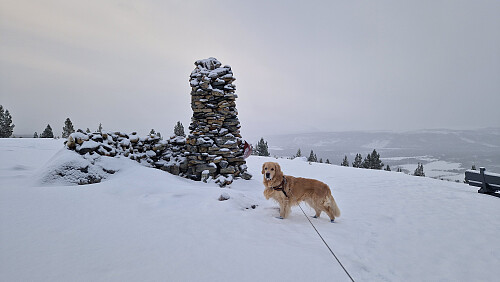 En dag med mange gjøremål så det ble tidlig start med Aron. Litt snøvær og grått på turen. Møtte en mann medxen hund som sprang løs. Aron var eksemplarisk og det var forsåvidt den andre hunden også. De ville mest hilse på hverandre.