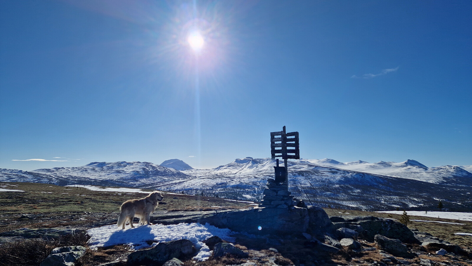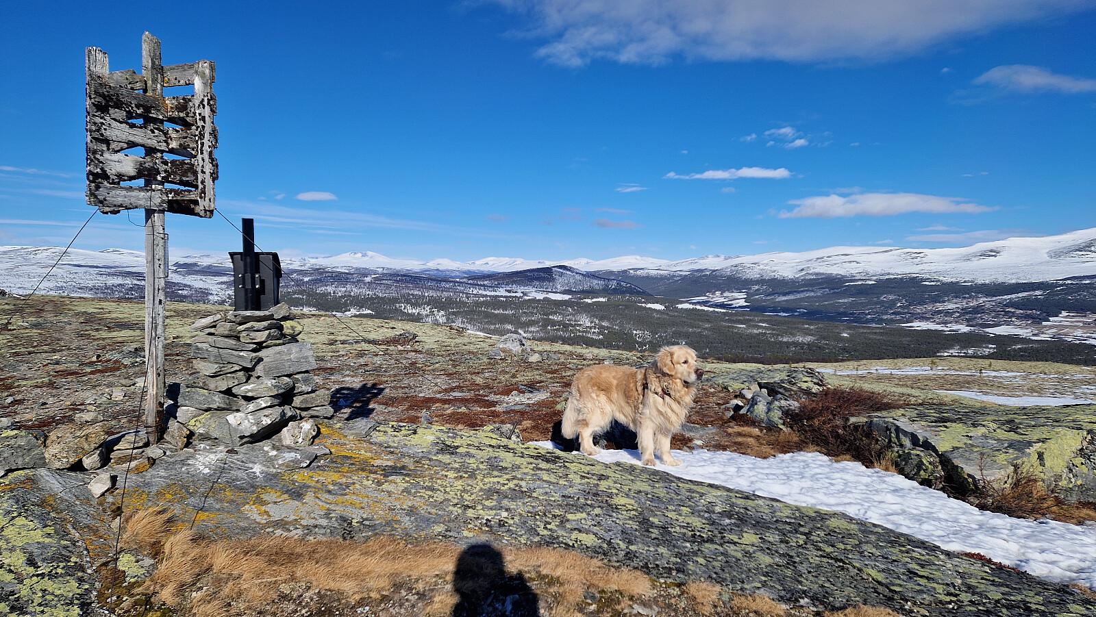 Sol og blå himmel I dag også så vi har virkelig fått fint påskevær. Samme turen som i går slik at Aron kunne springe løs. Snart båndtvang så siste dagene må nytes. Hadde med gradestokk så monterte opp den samtidig.