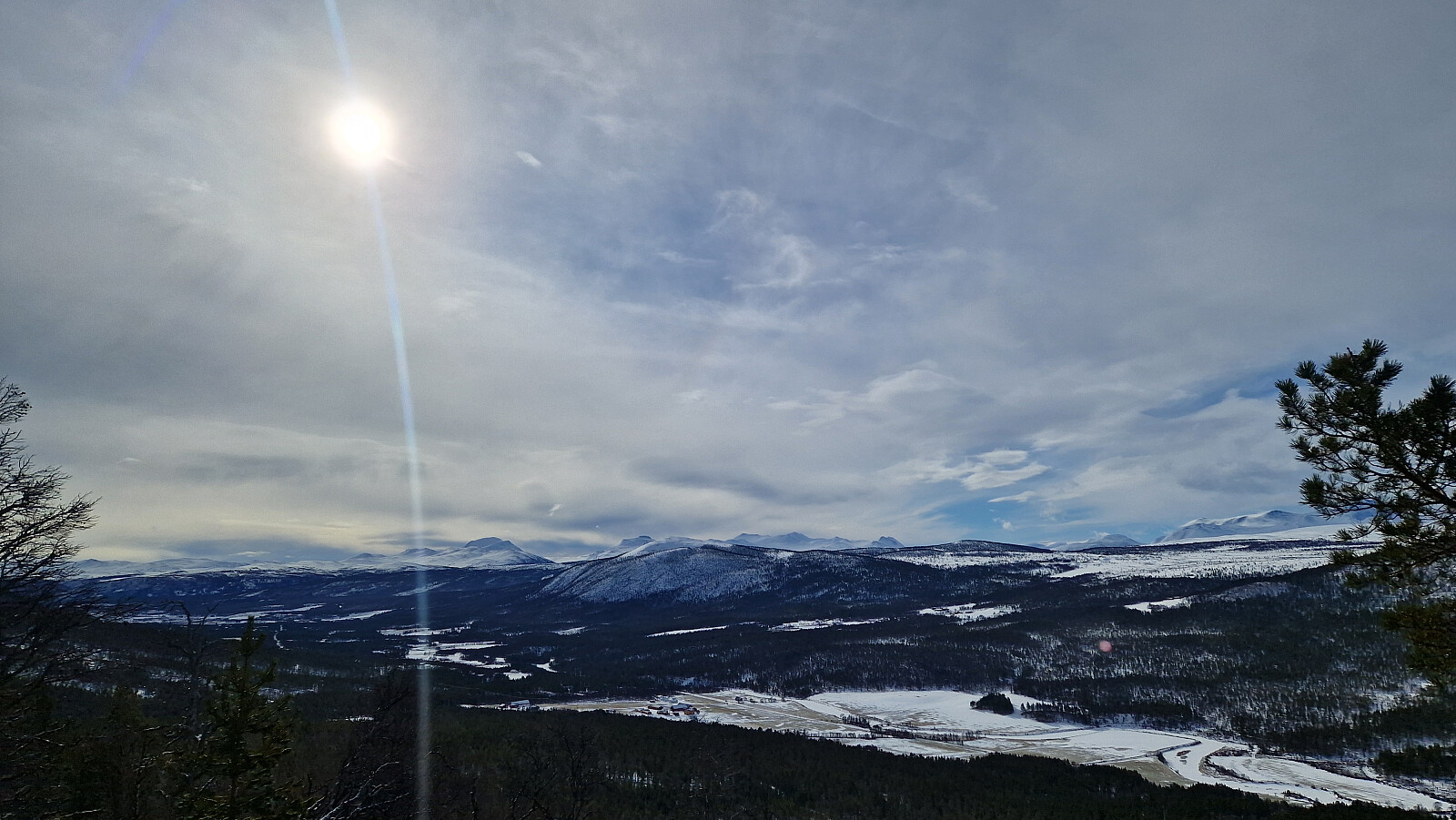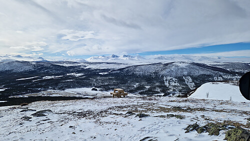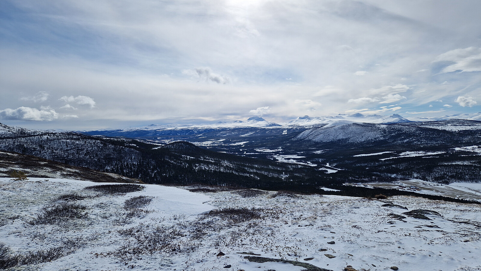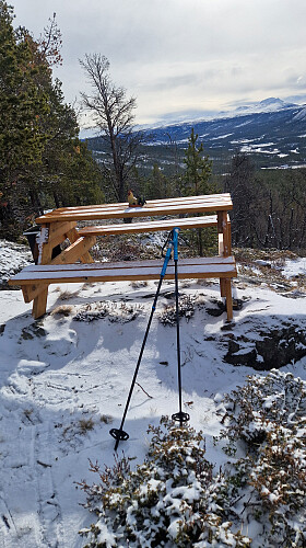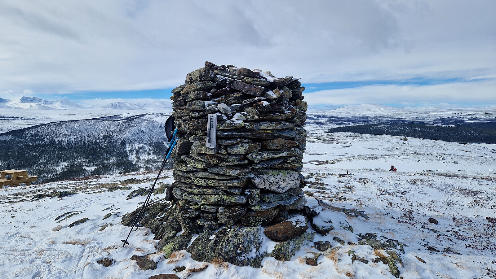 Så ble det trugetur i dag også. Var usikker på snømengde oppi lia så vi tok truger. Start fra den gamle revefarmen og gikk opp til skiløypa. Her var det skare og delvis lite snø. Vidre opp til setrene var det stedvis enda mindre snø. Tok opp snarveien ved ene setra og opp på selve merket sti opp til pynten først. Signering i trimboka før vi fortsatte oppover mot toppen. Tok av fra stien og gikk bratt oppover på skaren. Veldig herlig å gå her. Litt vind og noe overskyet på toppen så ble rask pause. Signerte i trimboka og retunerte samme vei. Tur med Erling i dag.