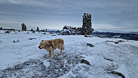 Morgentur med Aron i dag med start ved containere.Veien oppover var nå brøytet så kjempefint å gå med noen innslag av bløte partier. Fulgte det gamle trugesporet fra veien og opp på toppen. Litt gjennomtråkk her og der. Idag kom de gode minnene med denne turen frem igjen.Aron sprang løs hele veien opp og nesten hele veien ned igjen. Like før vi var nede igjen møtte vi kjentfolk med hund så Aron måtte på med båndet.Nok en fin tur.