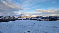 I dag var Folldal kaldest i landet med nesten 25 minus på mårran. Og da blir det selvfølgelig en fin dag. Svein pratet på at han hadde truger på lager og mange år siden han hadde prøvd døm så han ville være med tur i dag. Vi kjørte på Sveen og startet der. Fulgte skiløypetraseen. Der var det hardt etter tråkking så vi fulgte det bort til der stien tar av. Her var det noen som hadde gått på ski så fulgte sporet oppover en bit før det tok av mot Molldalsetra. Fra her ble det urørt snø. Jeg gikk først og lagde spor. Svein var ikke helt i slaget i dag så vi tok det med ro opp mot toppen. Jeg koste meg med å brøyte spor. Liten pause på toppen med signering i trimboka før vi retunerte samme vei. Svein syntes det var helt supert å få gått på truger igjen og Aron sprang >>>