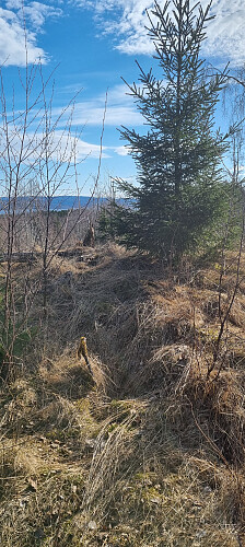 Solbergan: 1 km, 132 høydemeter, 21 minutter. Planen var å parkere ved Ytterøy-kylling for der er den en stor parkeringsplass, men det viste seg at den var kun for ansatte. Ettersom det var en kort tur tok jeg sjansen, og parkerte der allikevel. Jeg fant ikke noe sti og det var veldig mye småtrær som var kappet ned, så det ble lite minneverdig tur i ulent terreng.