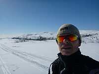 Var jo dessuten scooterspor innover, men bedre glid utenfor sporet. Nabo-hytta var på scootertur så det ble både en øl og pølse i brød på Gaundal, etter 19 km ...