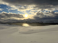 Vi planla en tur denne februar helga, og det ble Kine og jeg som dro avgårde. Parkerte bil ca 1900 ved Billingvegen i 18 minus og litt vind lørdag kveld. Vi gikk i retning "oppover" og fant et nedkjøringsspor som var i overkant bratt og kronglete i skauen. Med litt fiskebein, dårlig fellelim og sterk lyst til å komme fram til hytta før midnatt (noe vi ikke rakk) kom vi omsider over tregrensa. Og der, da vi runda siste kul'n, og Sjåk ble borte bak oss, kom månen opp bak fjella og nordlyset dansa over himmel'n! Ganske så fantastisk, tross at jeg var mer sliten enn je kunne huske å vært på skitur på mange år :) Ankomst hytta ca halv ett / kvart på ett på natta. 22 minus og litt vind,- det var det også inni hytta bortsett fra at det var mer vindstille. Fyrte opp i ovn, åt >>>