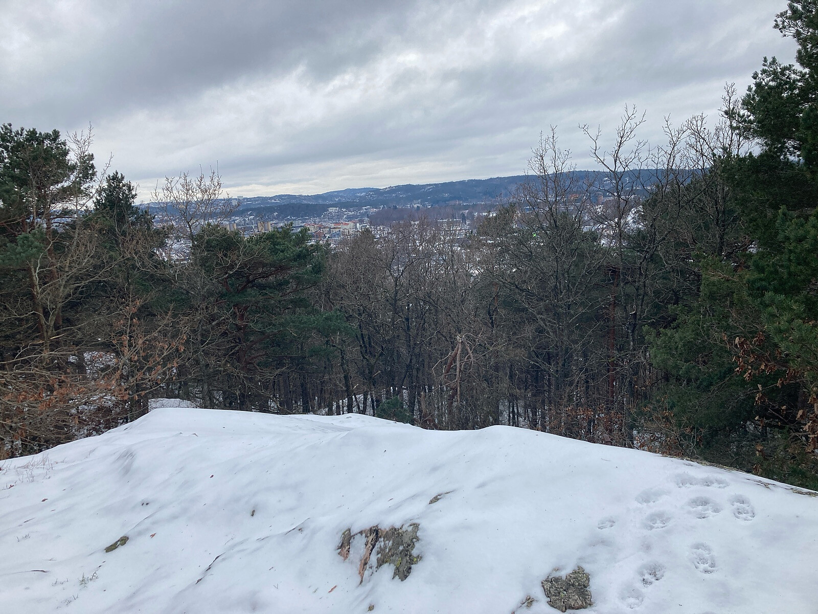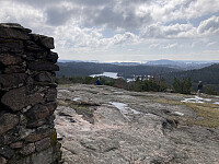 Årets første tur gikk til den omvendte båt og Skråstadfjell i Jegersberg. Gikk via Jegersberggård, nedre Jegersbergvann og opp til Øvre jegersbergvann via gode grusveier og godt skiltet. Det var ganske glatt på veien, så det var ikke full fart. Fulgte så skilt til Den omvendte båt, grei sti opp fra Kyrtjønn, men glatt på steinene og på svabergene opp siste biten til den omvendte båt var det speilis så måtte holde meg i krattet og gå litt omvei for å komme trygt opp. Kom en liten hagelbyge da jeg var på toppen, men kjempefin utsikt. Fulgte så sti skiltet mot Skråstadfjell. Tidvis glatt her også men god sti til masta og gikk opp på en lille forhøyninga ved siden av masta. Ikke noe utsikt å skryte av her. Fulgte så stien tilbake igjen, men gikk mot Salvestjønn når skilt >>>