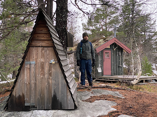 Like før vi kom til Ytterlia, tok vi av på en sti oppover til venstre, og fulgte denne opp på Syltefjellet. Denne stien var rød-merket, men vi klarte nå å gå feil et sted like vel, men vi skjønte det allerede etter ca. 100 meter, så vi gikk bare tilbake og fant igjen rød-merkingen, og fortsatte oppover. Etterhvert ble det flekkvis mer og mer snø langs denne stien, men vi kom oss nå uansett greit opp på Syltefjellet [602 m.o.h.]. Der oppe var det ei lita hytte, og ved siden av hytta noe som så mer ut som et lite skur (bilde #10), men som jeg ikke aner hva er til. Fra Syltefjellet fortsatte vi så langsetter en sti som gikk bort til det som her i Peakbook er angitt som Ytterlinakken [610 m.o.h.]. Her er det imidlertid på sin plass å påpeke at de to navnene Syltefjellet og Ytterlinakken nok brukes litt om hveranddre, for på skiltet oppe mellom de to små hyttene på Syltefjellet står det Ytterlinakkane på skiltet. Antagelig har folket på Valldalsida fra gammelt av kalt fjellet for Syltefjellet, mens de på Fjøre-sida har kalt det samme fjellet for Ytterlinakken.