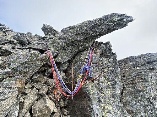![Bilde #14: Rappell-feste oppe på hovedtoppen [1712 m.o.h.]. Disse benyttes til rappell fra toppen og ned på sørryggen. Skal man gå nordryggen ned igjen, vil de fleste ta seg forsiktig ned igjen fra toppen uten rappell.](https://images2.peakbook.org/images/14939/Solan_20230812_64d78048876e5.jpg?p=medium)
