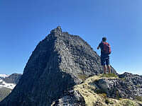 Jeg har hatt litt forskjellige favorittfjell opp gjennom årene. I flere år var det Remmemstinden i Vestnes kommune, men de siste årene har det vært Romsdalshornet. Hornet er krevende å bestige om vinteren, så da jeg la ut på denne turen, hadde jeg gått og ventet på at snøen endelig skulle forsvinne, slik at jeg omsider kunne ta turen opp. Jeg parkerte på vanlig sted øverst i Vengedalen, hvor det ligger en parkeringsplass på 740 m.o.h., like nedenfor Hornvatnet [760 m.o.h.]. Herfra er det bare 810 høydemeter opp til toppen på Romsdalshornet. Turen opp er imidlertid både bratt og eksponert, så det tar sin tid å komme seg til topps. Turen tok turen meg drøyt 4 timer opp og ned igjen denne dagen, mens rekorden min er på knappe 3 timer, og da ca. 1 1/2 time hver vei. Klatrer man >>>