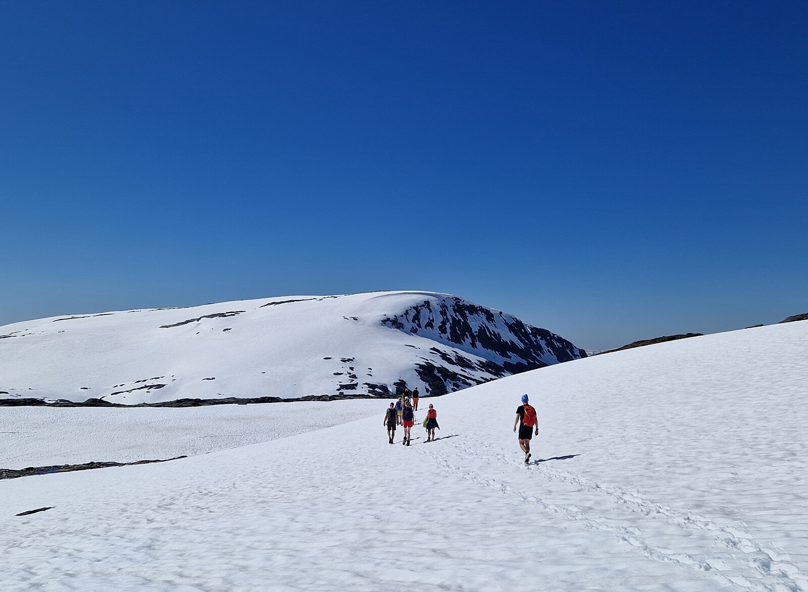 Tur med veldig kjekke folk og nydeleg ver:) Min gamle biologilærar var ein av turleiarane, og det vart kjekt at han kjende meg att. Unormt mykje snø i fjellet. Så det var lett å gå. Bading i den nydelege badekulpen ved Nørdstedalsseter etter turen.